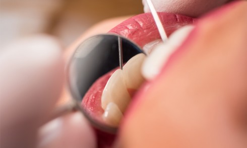 Pour évaluer l’épaisseur gingivale, la méthode la moins invasive consiste à insérer une sonde parodontale, métallique, à travers le sillon gingival. Si la sonde parodontale est visible, cela indique une épaisseur fine (< 1 mm) [1-3]. Le phénotype gingival fin est plus susceptible d’engendrer l’apparition ou la progression de récessions gingivales [4].