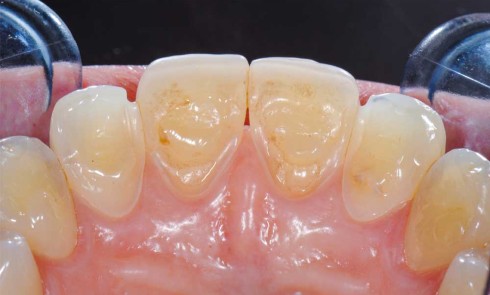• Évaluation de l’épaisseur d’émail et de dentine et réduction des tissus non soutenus : en vue de respecter les principes de conservation des tissus dentaires, les parois minces et fragiles de la cavité peuvent être conservées et renforcées avec du composite. De nombreux auteurs recommandent une largeur ou épaisseur minimale des parois de 2 mm avant renforcement pour les dents pulpées et 3 mm pour les dents dépulpées [1-5]. Nous retiendrons donc ces valeurs même si certains auteurs indiquent qu’une valeur de 1 mm [6] peut donner satisfaction.