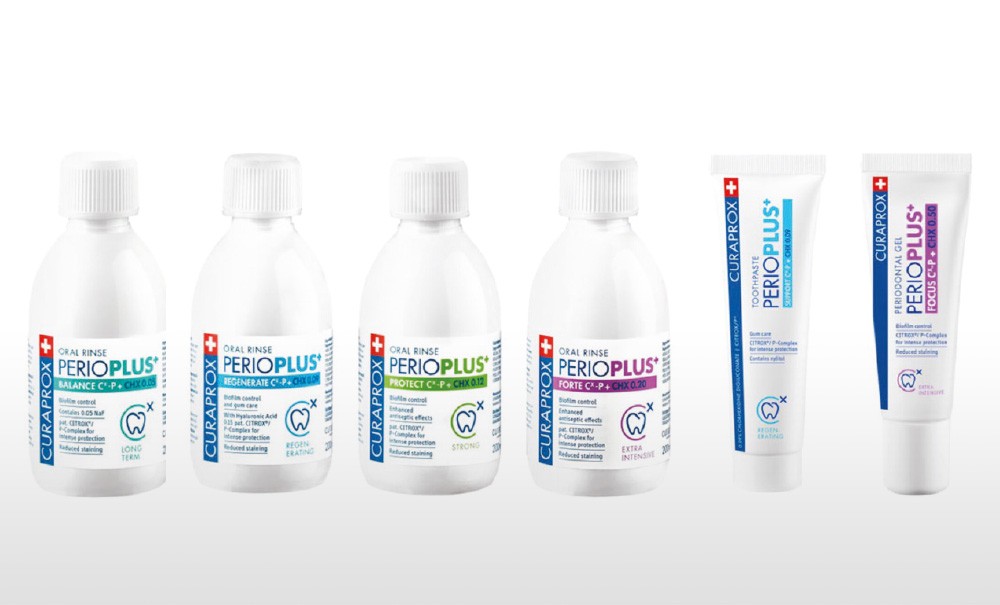 PerioPlus+ Forte a la plus forte concentration en CHX et est conseillé en traitement intensif, en cas d’extractions dentaires complexes mais aussi en pré-per-post chirurgie parodontale et implantaire.