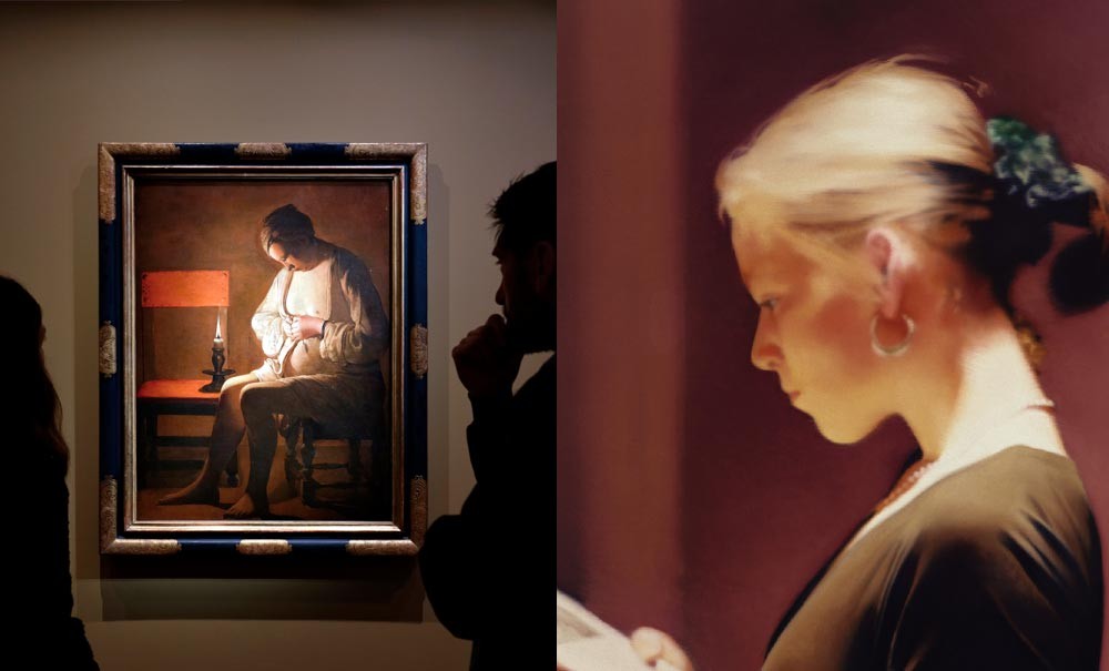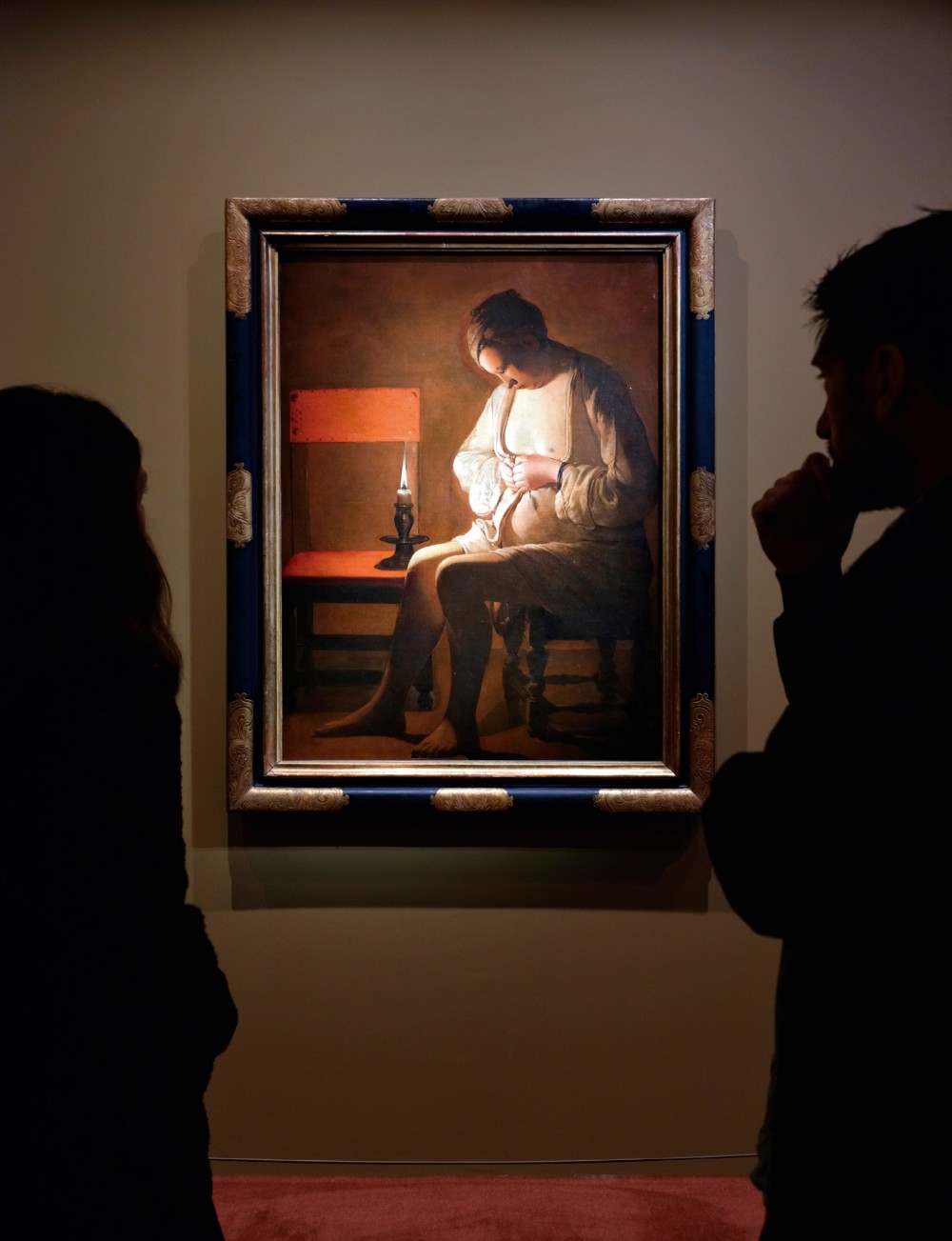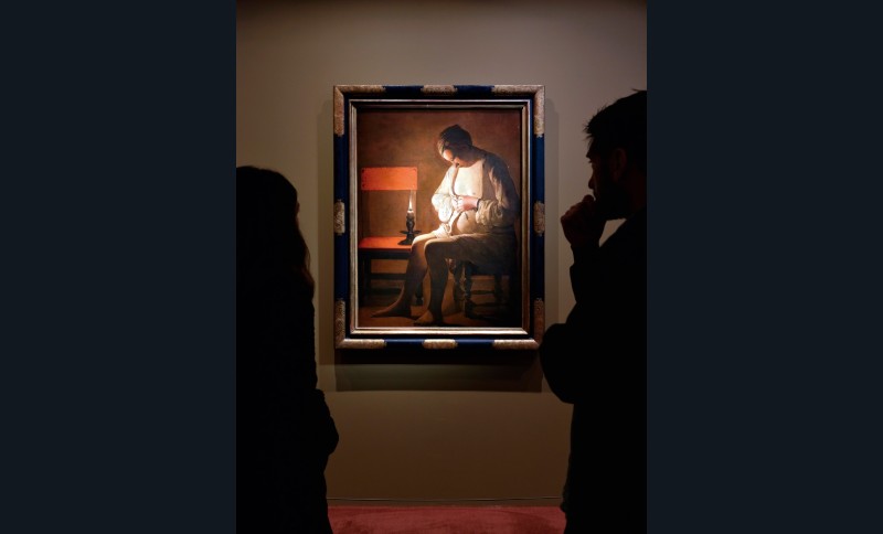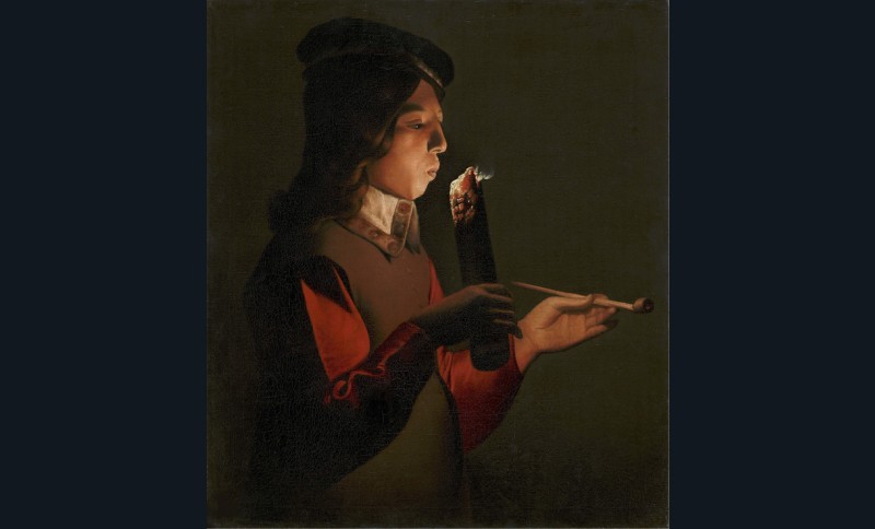 Ses chandelles ont illuminé d’une paix profonde le violent clair-obscur venu du Caravage. Si Georges de La Tour s’est inscrit dans son sillage, comme nombre de peintres du premier XVIIe siècle, c’est en fermant soigneusement la porte aux passions obscures de son aîné. Au dehors, le bruit et la fureur peut-être. Au sein du logis clos, le calme règne en maître. C’est d’abord un silence, qui s’impose même aux joueurs à leur table, aux compagnons qui partagent une somme. Pas de heurts, peu de mouvement, des gestes non pas figés mais posés, obéissants sans raideur à une géométrie maîtrisée, stylisée, sobrement essentielle. Pas de détails superflus, d’ornements vains. La peinture de La Tour n’emplit pas l’espace, elle le vide. Pour cette raison que le retirement intérieur doit seul y tenir toute la place : si le peintre retranche avec austérité et laisse l’ombre engloutir l’accessoire c’est afin que son sujet resplendisse avec munificence. Dans ses scènes de genre, c’est avant tout pour nous faire découvrir ce qui se joue entre ombre et lumière – triche aux cartes, discret vol à la tire, calcul aux dés, soupçons – sous des regards obliques et des masques impavides qui expriment déjà une pensée secrète ou retenue. Avec ses portraits où surgissent du néant de vieux hères aux yeux vides ou fiévreux, c’est une vie de misère qu’il éclaire d’un trait. Mais tout cela prépare ce qui est au centre de son œuvre et qui nous touche le plus : l’expression du retrait en soi-même, l’examen intime de ses pensées ou de sa conscience. Entre contemplation et méditation, il est bien difficile de délimiter ce qui relève du songe ou de la prière, du profane ou du sacré dans ce dialogue muet et profond reliant des êtres à une dimension qui transcende la condition humaine et fait de ce retrait une élévation.