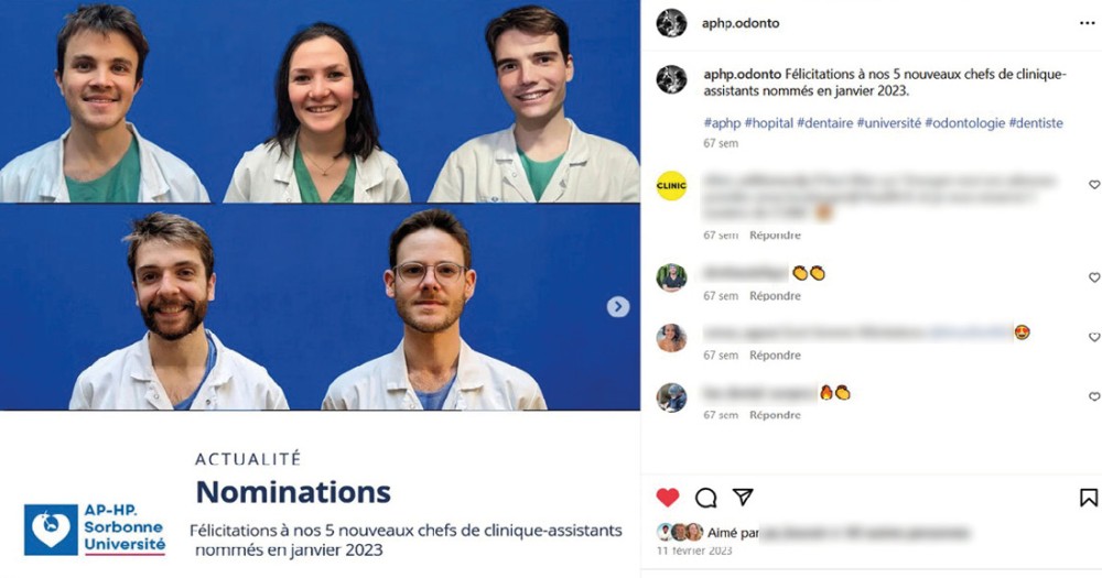 Le premier objectif du compte que nous avons développé était de présenter les équipes soignantes et leur renouvellement (fig. 2). Dans le but de familiariser les correspondants du service hospitalier avec les équipes de praticiens qui prendront en charge leurs patients, des publications ont été réalisées pour présenter les nouveaux chefs de clinique des universités intégrant notre unité de soins. De même, les actualités du service, que ce soit la participation des praticiens hospitaliers à des congrès, l’attribution de prix ou encore les publications du service font l’objet de publications. Pour cela, l’ensemble du personnel du service a signé un consentement de droit à l’image. Le compte s’est révélé être le bon outil pour humaniser le service au travers de ses publications.