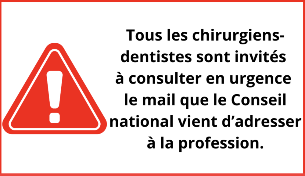 Il demande à tous les chirurgiens-dentistes « de consulter en urgence le mail qu’il vient d’adresser à la profession et le cas échéant, d’apporter sans délai l’indispensable réponse ».
