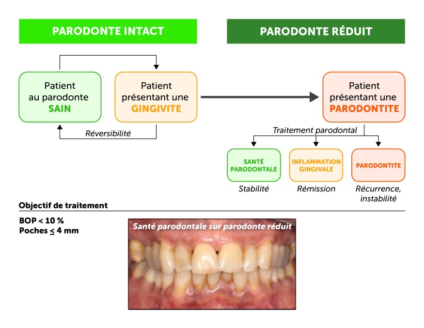 Figure 1. Relation entre les états de santé parodontale chez le patient parodontal(adapté de Chapple I et al, J Periodontol, 2018)