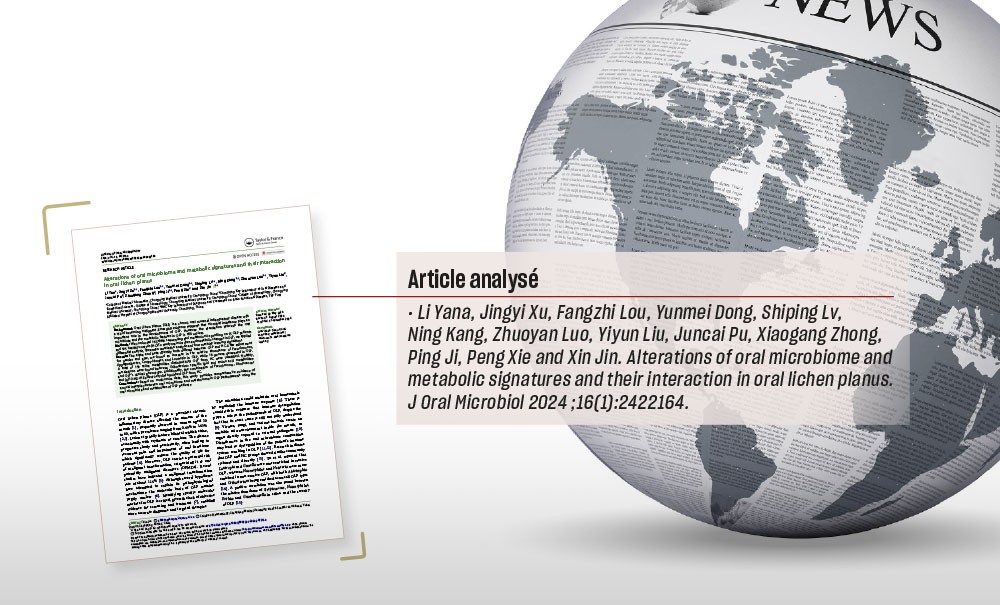 La recherche a confirmé le lien entre les modifications du microbiome buccal ou de son métabolisme et de nombreuses maladies immunitaires et inflammatoires, telles que les maladies auto-immunes, les maladies inflammatoires de l’intestin et la polyarthrite rhumatoïde. Une étude antérieure a identifié des différences dans le profil métabolique salivaire chez les personnes atteintes d’OLP. Ainsi, des perturbations dans la composition du microbiome buccal pourraient entraîner une dysrégulation du système immunitaire du patient et induire un OLP.