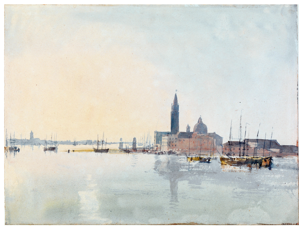 Apprenti dessinateur et coloriste dans l’âme, Turner réalise dès l’adolescence des aquarelles topographiques pour des architectes. On lui demande exactitude, précision dans le détail, mise en valeur. Ses relevés objectifs, photographies avant l’heure, sont immédiatement et incontestablement d’un grand lecteur de paysage. Quand il fixe le réel d’un lieu, il capte d’emblée ce qui en fait un site : non seulement le plus visible – le caractère, les éléments pittoresques, les rapports apparents entre volumes naturels et bâtis – mais aussi les substructures invisibles telles que lignes de force géologiques, équilibre secret des masses, spécificités mouvantes de l’atmosphère. À vingt ans à peine, il excelle à distinguer l’essentiel de l’accessoire sans pour autant simplifier ou omettre : s’il peint un château sur un escarpement, la plus fine modénature est en place et le silex perce sous la craie. La Royal Academy où il se forme auprès de son mentor Reynolds qui la dirige, ne s’y trompe pas et l’expose ; les commandes affluent, Turner est lancé. Il n’est pourtant qu’au début de sa quête et de ses défis.