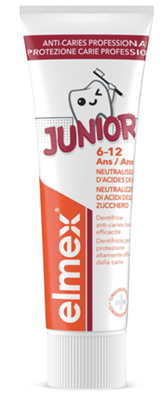 Le nouveau dentifrice elmex Anti-Caries Professional Junior contient de l’arginine et du carbonate de calcium, qui permettent de rétablir un pH physiologique au sein du biofilm en neutralisant l’acidité produite par la dégradation des sucres, cause n° 1 des caries. Les études le montrent, la combinaison de cette technologie avec le fluorure d’amine apporte quatre fois plus de minéraux aux dents déminéralisées [1], avec une réduction de 50 % des lésions initiales après 6 mois [2] et 20% de nouvelles caries en moins après 2 ans [3].