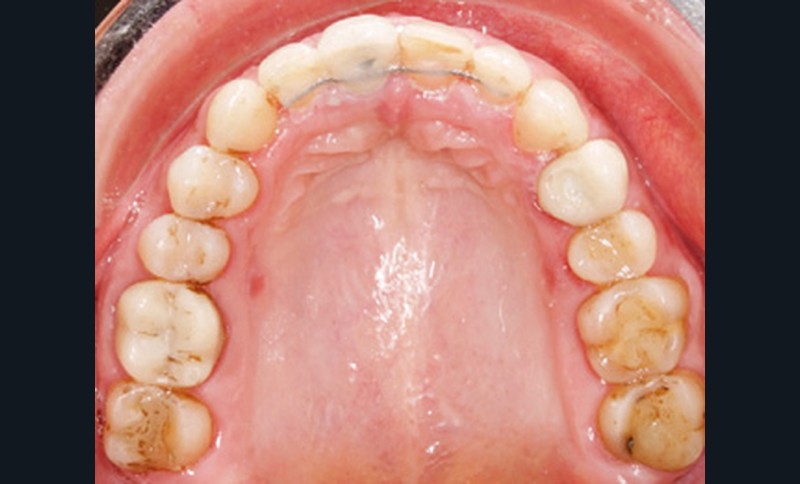 Les finitions et l’intercuspidation sont réalisées avec des arcs TMA .018 x .018 et avec des tractions interarcades verticales.