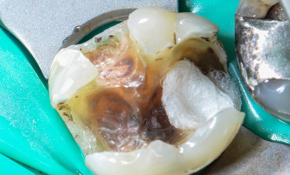 L’étanchéité peut être optimisée par l’application d’une digue liquide au niveau cervical, en particulier autour de la dent support du crampon. Des mesures complémentaires – ligature, Téflon, wedjet™, crampons accessoires, cale-bouche – contribuent également à sécuriser le champ opératoire [4].