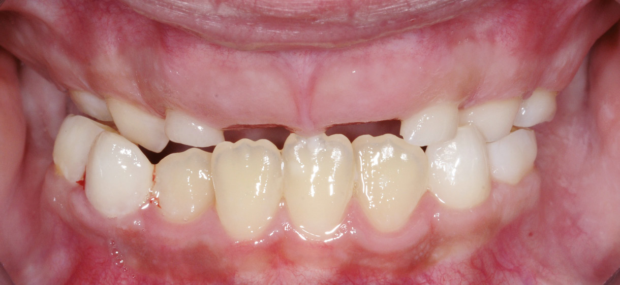 Ce cas est une forme sévère, puisque les quatre quadrants sont touchés ainsi que les dents profondément incluses, correspondant à une forme de DPE bilatérale et bimaxillaire (fig. 1).