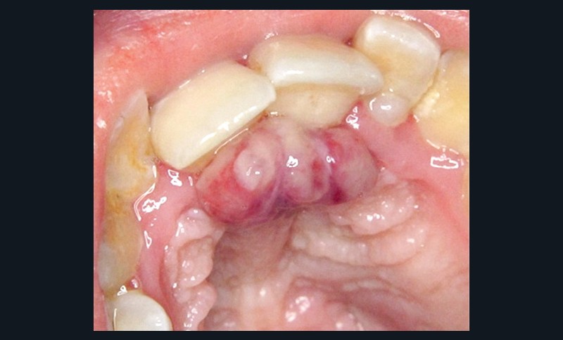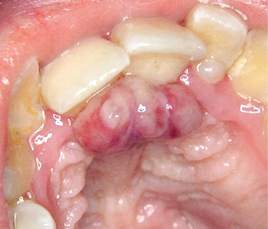 - Réaction hyperplasique due à une prothèse amovible mal adaptée (fig. 5a et b).