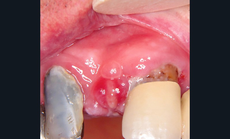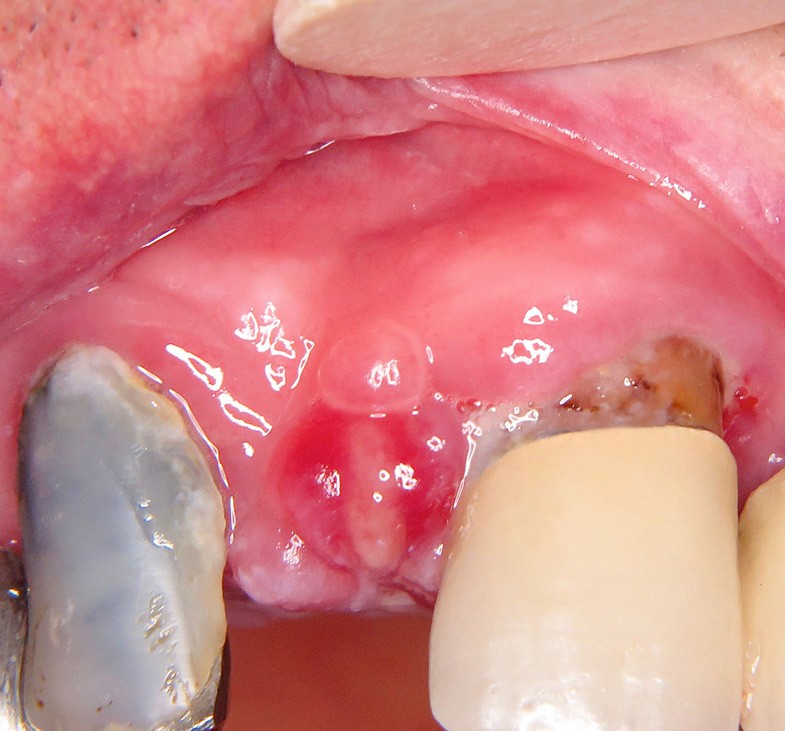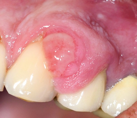 - Granulome intra-alvéolaire à la suite d’une avulsion dentaire (fig. 4a et b).