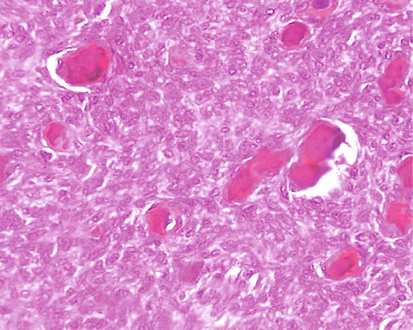 - Histologie : tissu conjonctif richement vascularisé + infiltrat massif de plasmocytes (fig. 1c).