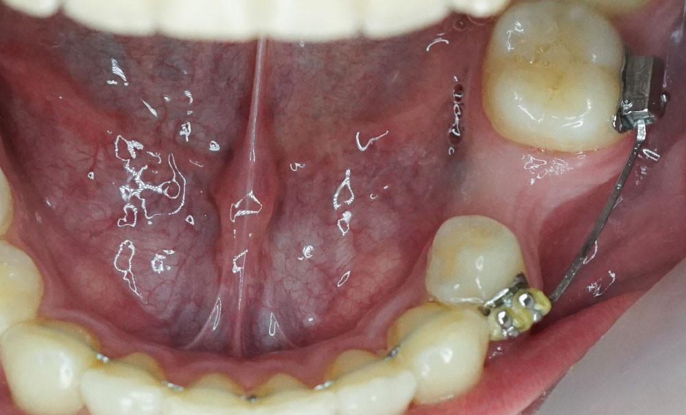 Quand un traitement orthodontique est indiqué dans le cadre de la persistance d’une molaire temporaire, l’orthodontiste doit toujours choisir entre deux solutions : maintenir ou fermer l’espace d’agénésie. Malheureusement, il est parfois confronté à une indication de maintien de l’espace d’agénésie, alors que la dent temporaire ne peut pas être maintenue jusqu’à la fin de la croissance (pour cause de caries, de réinclusion sévère, de perte, etc.) (fig. 1). La pose d’un mainteneur d’espace en fin de traitement est nécessaire, mais rien ne maintient l’os jusqu’à la fin de la croissance et la pose implantaire ! Les patients se retrouvent alors obligés de recourir à des préparations osseuses préimplantaires parfois lourdes. Le but de cet article est de proposer des solutions de maintien du volume osseux après avulsion de la deuxième molaire temporaire.