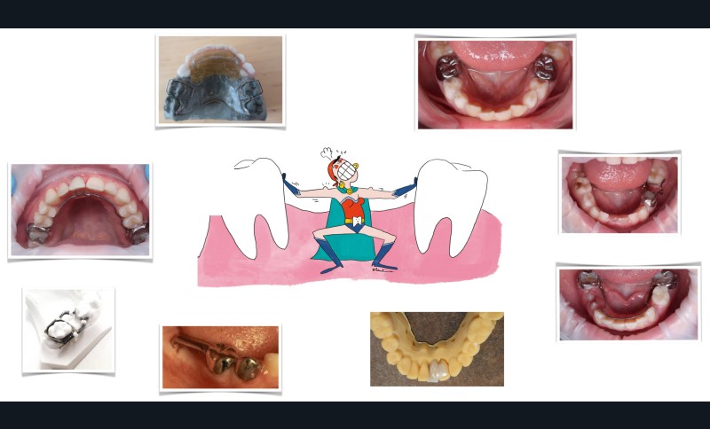 - Un appareil amovible remplace les dents et peut être associé à des vérins pour stimuler la croissance transversale du maxillaire. Idéalement, le volume laissé à la langue ne doit pas être impacté.