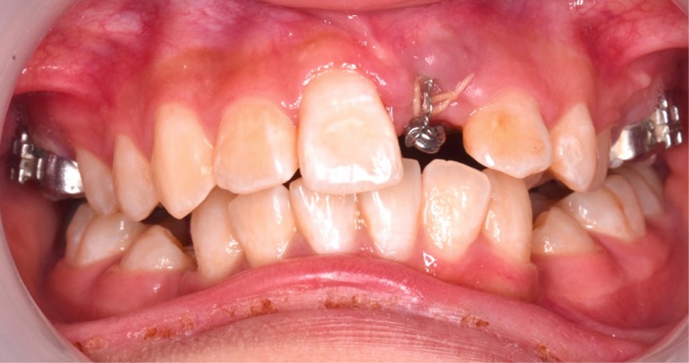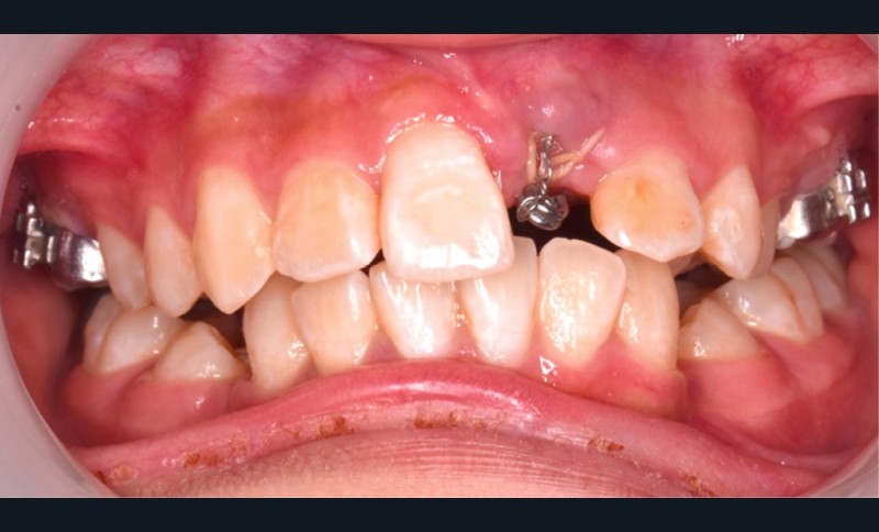 Ce cas clinique illustre l’importance d’un dépistage précoce qui aurait permis de limiter — voire d’éviter — les complications menant à la perte de 21 [2]. La situation initiale, complexe tant sur le plan occlusal qu’esthétique, a nécessité une prise en charge pluridisciplinaire étroite. Il aurait notamment été envisageable de proposer, en parallèle de la traction de la canine, une solution esthétique temporaire afin de compenser l’absence de dent antérieure [3]. Cette option n’a pas été retenue ici, l’éruption de la canine ayant été relativement rapide.