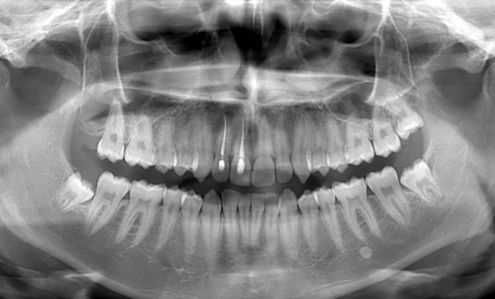 Réalisation d’une radiographie panoramique chez un patient âgé de 62 ans, sans/avec symptomatologie douloureuse.