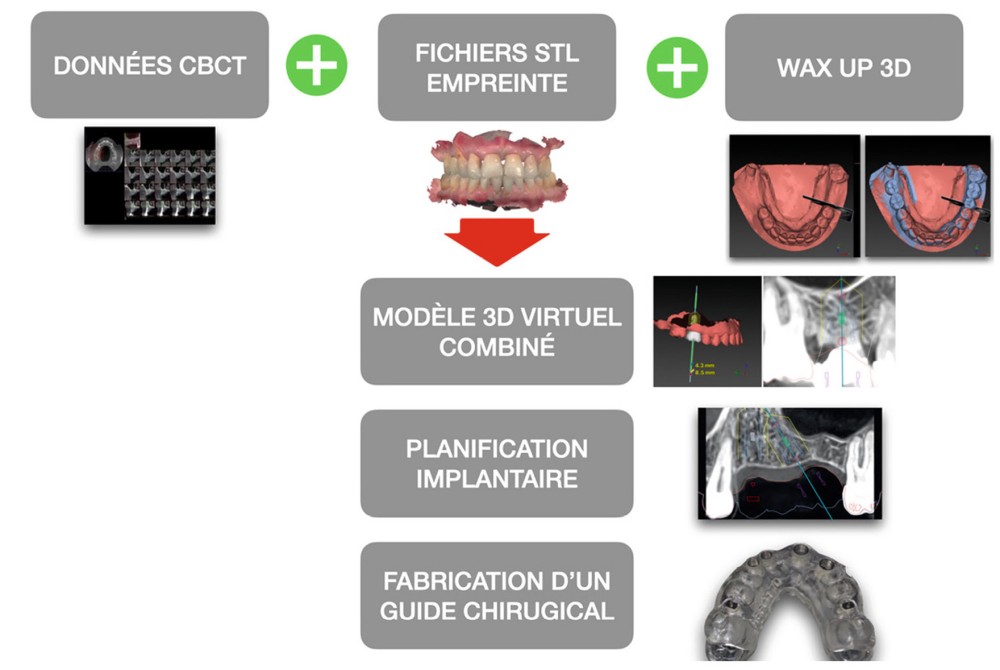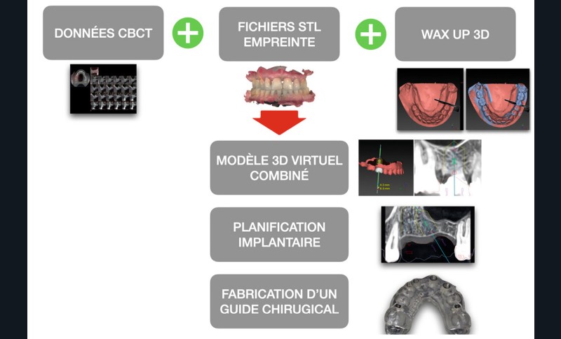 La planification assistée par ordinateur, associée à la chirurgie guidée statique ou dynamique, permet aujourd’hui de transposer cliniquement le projet prothétique numérique et ainsi sécuriser ce positionnement dans les trois plans de l’espace (fig. 2).