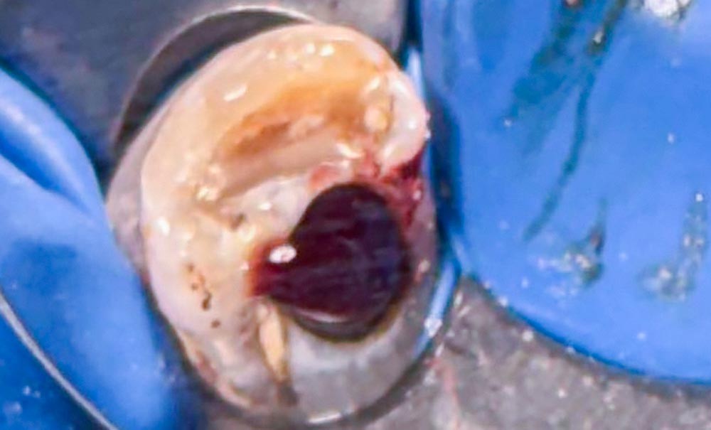En odontologie, l’application des recommandations issues des données de la science ne doit jamais se dispenser d’une réflexion adaptée à chaque situation clinique. Ainsi, certains cas particuliers imposent d’interroger le cadre établi pour proposer une prise en charge appropriée, sans pour autant s’en affranchir. Dans les cas de dents permanentes nécrosées à apex ouvert, les traitements les plus souvent proposés sont l’apexification et la revascularisation. Cette dernière vise à favoriser la cicatrisation péri-apicale tout en initiant la création d’un tissu fonctionnel au sein du système canalaire, celui-ci se rapprochant alors plus d’un tissu parodontal que d’un tissu pulpaire. Cette thérapeutique est généralement davantage utilisée chez l’enfant afin de favoriser la poursuite du développement radiculaire et le renforcement des parois dentinaires [1]. Toutefois, chez l’adulte, celle-ci reste plus rarement indiquée et se voit discutée dans la littérature [2, 3]. En effet, la fermeture apicale reste souvent incertaine et les traitements par apexification avec un bouchon apical au moyen de biomatériaux restent la référence. Pourtant, dans certaines situations, bien que le patient ne présente plus de potentiel de croissance, la dent conserve des caractéristiques biologiques spécifiques qui peuvent justifier le recours à une approche régénérative en première intention [4, 5]. De plus, lorsque les indications sont bien posées et les protocoles parfaitement respectés, le taux de réussite des revascularisations sur des dents immatures chez l’adulte est similaire aux taux de réussite chez l’enfant…