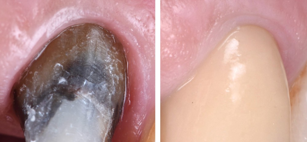 Toutefois, l’approche traditionnelle, non adhésive, qui s’appuie sur une préparation corono-périphérique (couronne) pour obtenir de la rétention mécanique, a encore sa place dans nos exercices. Elle est indiquée lorsque l’approche adhésive n’est pas envisageable [4] : réinterventions prothétiques, délabrements extrêmes, absence d’émail pour garantir la pérennité du collage [5], besoins de solidarisation/contention prothétique, traitements de certains patients seniors (coopération limitée, hygiène bucco-dentaire délicate, limites dentinaires telles les pertes d’attache et risque carieux majoré).