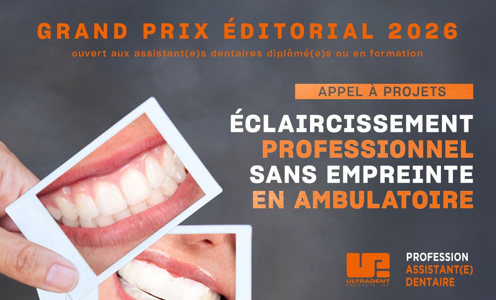 Édition 2026 du Grand Prix « Éclaircissement professionnel sans empreinte en ambulatoire : Rôles et expertise de l’assistant(e) dentaire « , sous l’égide de la revue Profession Assistant(e) Dentaire, avec le soutien institutionnel de la société Ultradent.