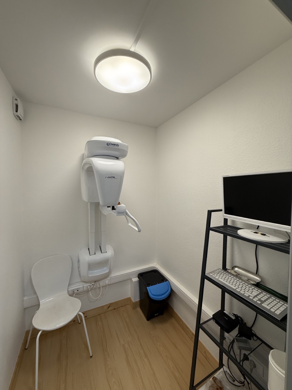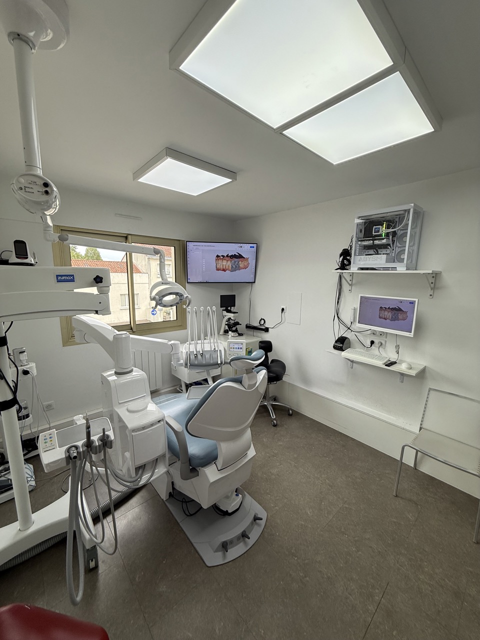2 fauteuils entièrement équipés, stérilisation conforme, panoramique 2D, caméra 3D.