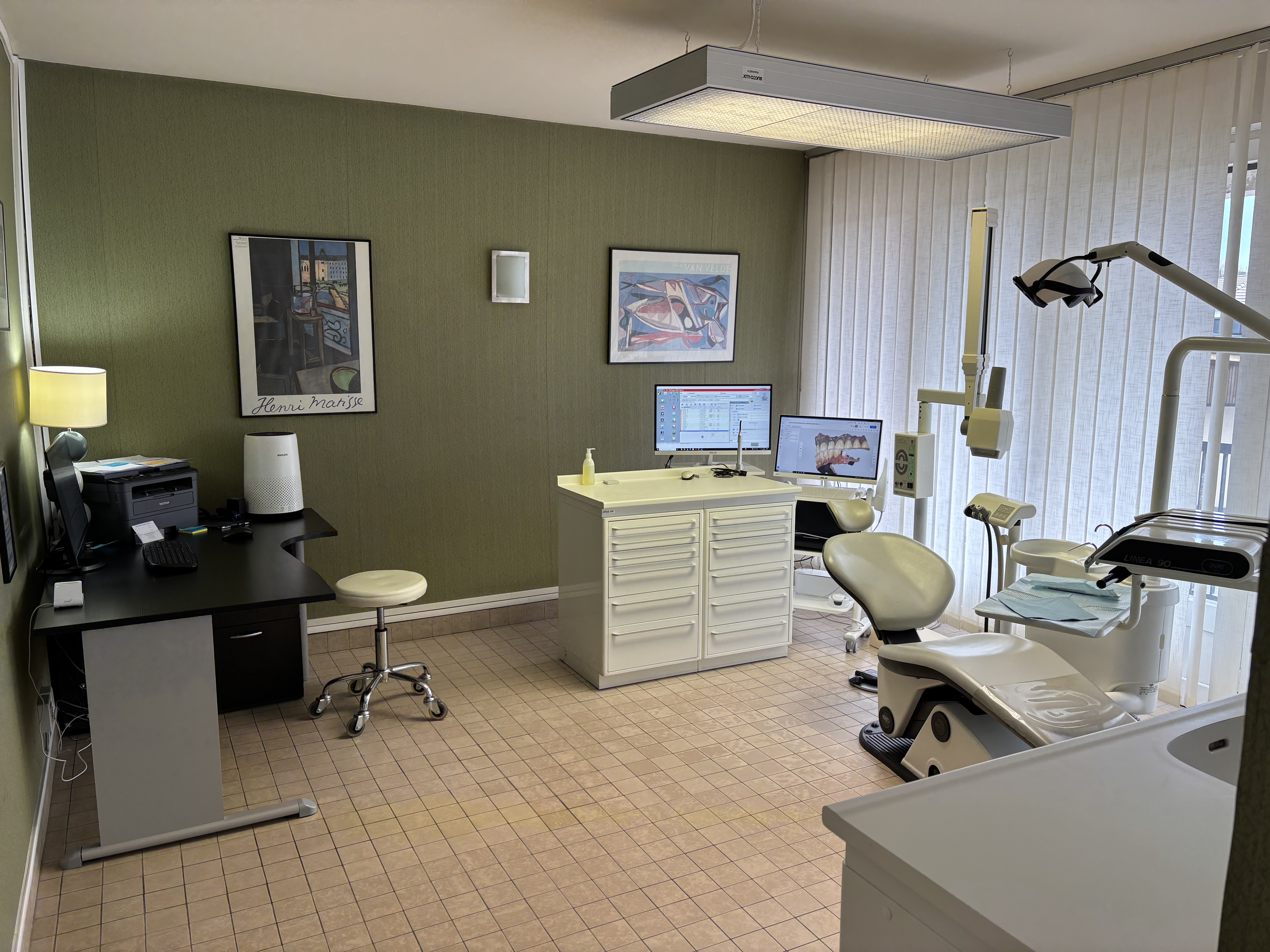 Cabinet historique 2 fauteuils tenu 35 ans par titulaire actuel, en centre ville au RdC d’un immeuble récent accessible PMR dans le quartier des écoles avec grand parking publique gratuit à 10 m.