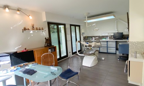 Résidence standing accessible PMR cabinet 81m2, 2 cabinets sur jardin privatif dont un avec fauteuil ambidextre,1 salle de stérilisation, grande salle d'attente, pièce pour pano, WC. Peut-être aménagé en 3 cabinets ou pour 3 praticiens en roulement. Tél. 07 81 10 00 24
