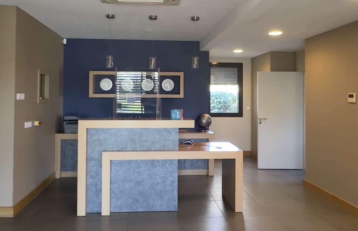 Il possède deux bureaux, un praticien et un assistante ainsi qu'une pièce de repos pour les pauses repas ou autre.
