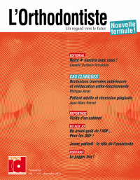 Accueil > Numéros L'Orthodontiste - toutes les parutions Choisir une autre revue Biomatériaux Cliniques Clinic L'Information Dentaire L'Orthodontiste Parodontologie Implantologie Orale, un nouveau regard Profession Assistant(e) Dentaire Réalités Cliniques Stratégie Prothétique Année de parution 2025 2024 2023 2022 2021 2020 2019 2018 2017 2016 2015 2014 2013 2012 2011 2010 2009 2008 2007 2025 2024 2023 2022 2021 ... 2020 2019 2018 2017 2016 2015 2014 2013 2012 2011 2010 2009 2008 2007 Feuilletez un extrait n°5 - 15 décembre 2020 n°4 - 15 décembre 2012 n°3 - 15 octobre 2012 n°2 - 15 juin 2012 n°1 - 15 mars 2012 Newsletter Inscrivez-vous à la newsletter pour recevoir chaque semaine l’essentiel de L’Information Dentaire Je m'inscris