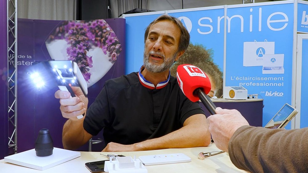 Sur le stand de Bisico, Lionel Marslen représentait la société Smile Line, qui fabrique Optishade, le colorimètre dentaire pour iPhone ou iPad. Couplé à un logiciel de conceptions de céramiques, ce petit appareil permet aux prothésistes dentaires de s’affranchir des problèmes de teintes.
